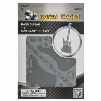 Orchestrate fascinating replicas with amazing detail and no mess using metal model kits! Bass Guitar Metal 3D Model Kit features shiny silver laser cut pieces to make a sleek miniature stringed instrument. Skip the glue and simply punch out the shiny metal pieces and bend, fold, twist, and insert tabs to connect together a museum quality, three dimensional creation that will look electrifying on display!