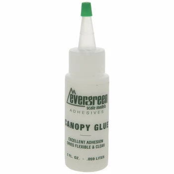 Secure your modeling kits with Canopy Glue! This water-based glue is excellent for gluing plastic to plastic, painted surfaces, wood, fiberglass, and more. It dries clear and flexible and is fully cured in twenty-four hours. Use this specialty glue for train and airplane models!