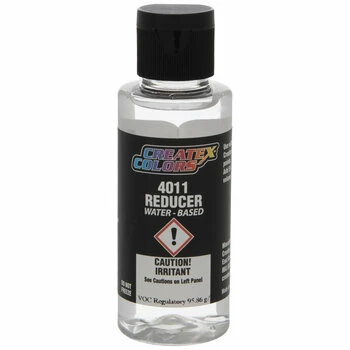 Use this Createx 4011 Paint Reducer to makeΒ paints thinner and more transparent. This multi-surface, water-based paint reducer features a clear liquid solution. Add it to paint pigments to make them flow and spray well through small-tip airbrushes operated at a lower pressure setting.