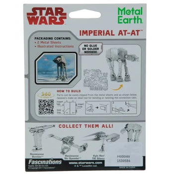 Halt the rise of the Resistance and take the ground with Imperial AT-AT Star Wars Metal Earth 3D Model Kit. Perfect for skill-building and honing your model building talents, this kit takes you from metal sheets to museum quality models with ease. Simply pop out the pieces and connect them by bending and twisting the connection tabs – no glue or solder needed. Once you’ve finished, display your model with pride and be one with the Force.Β